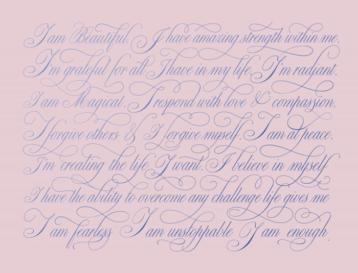 Both in terms of the illustrations she creates, and her typographic work, Nina’s style is characterized by feminine themes, soft, delicate lines and swirling embellishments using a range of color palettes and typographic styles.
