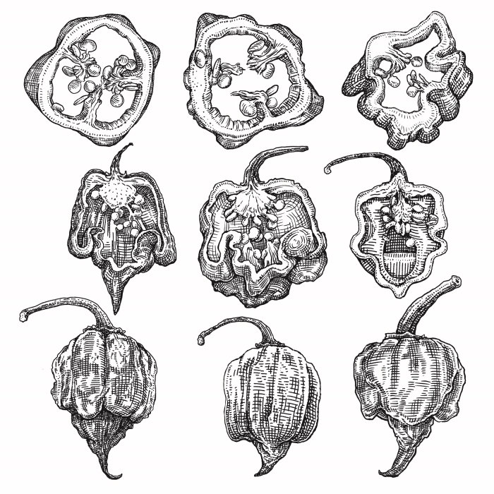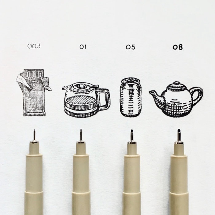 La plupart des images du mois d'août commencent à l'encre sur papier, mais elle utilisera également Adobe Illustrator pour transformer l'œuvre en compositions colorées et texturées.Style