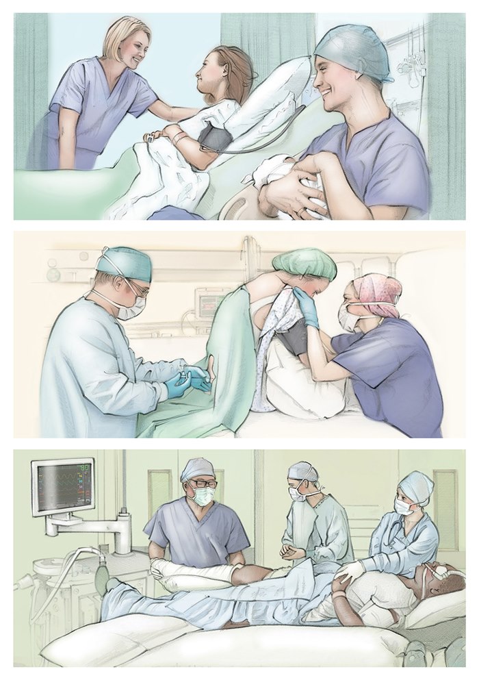 Juliet created a series of 18 full-color medical illustrations for patient information booklets titled Anaesthesia Information and Nerve Damage Associated with Spinal or Epidural Anaesthesia.