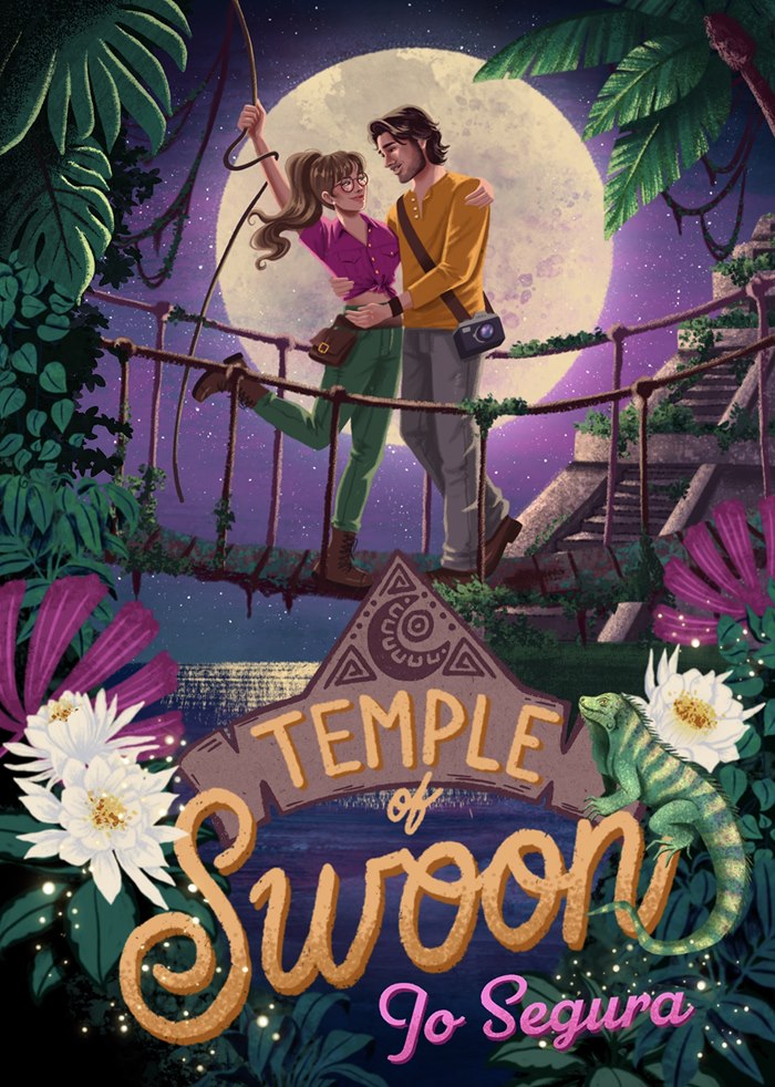 Balancing classic romance novel aesthetics with a sense of daring exploration, her illustration combines lush jungle foliage, ancient ruins, and dynamic character interaction to reflect the novel’s high-stakes escapades and slow-burn chemistry.