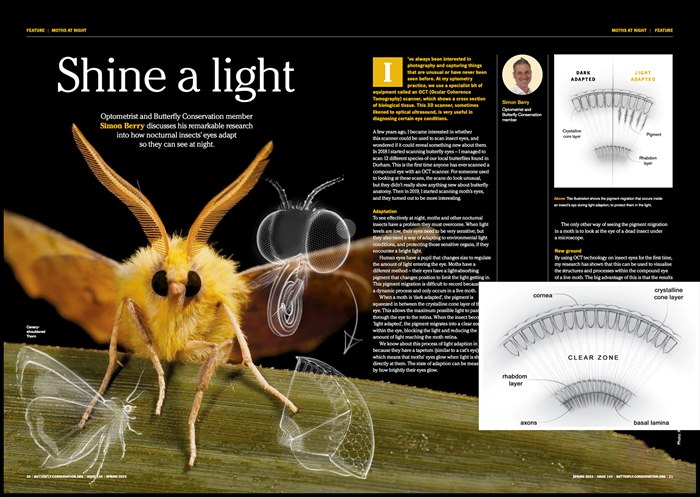 Her detailed visuals, featured in Butterfly magazine, help explain the complex eye adaptations uncovered using Optical Coherence Tomography. The collaboration blends science and illustration to make cutting-edge entomology accessible and engaging.