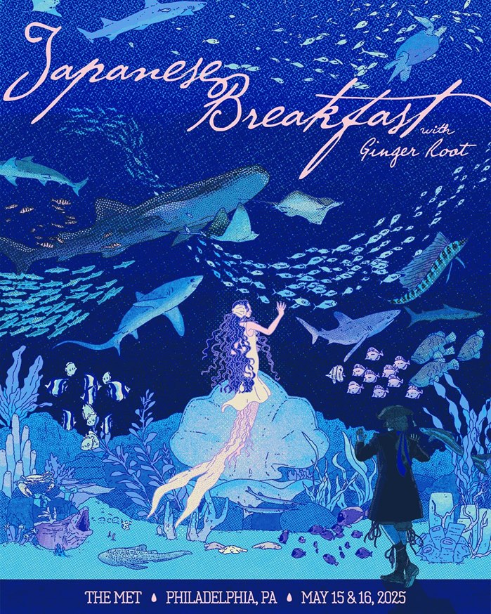 For a special May 2025 performance at The Met in Philadelphia, Japanese Breakfast invited artist Ing Lee to create a limited edition screen print poster—and she responded with a hauntingly beautiful underwater tableau.