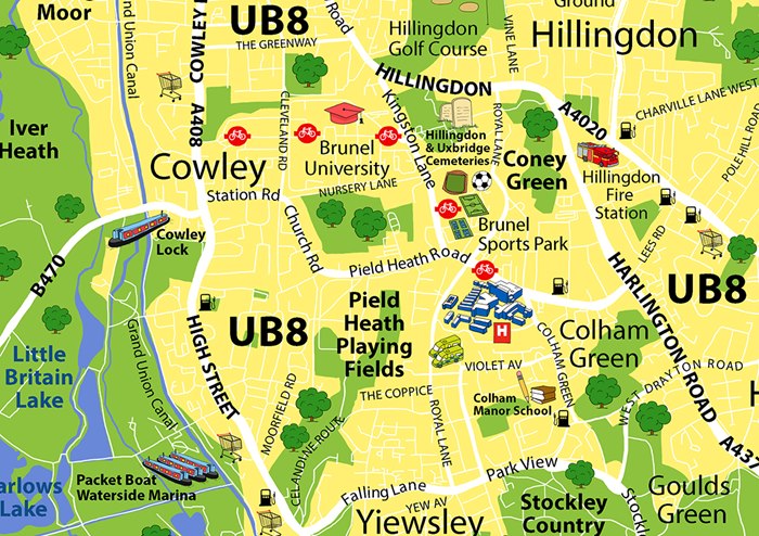 Designed for cyclists and pedestrians traveling from a 15–25 minute radius, the maps guide visitors to the hospital with pinpoint navigational accuracy while elevating the user experience through carefully illustrated details. Schools, parks, shops and other recognisable landmarks dot the route, turning a practical guide into a friendly companion.