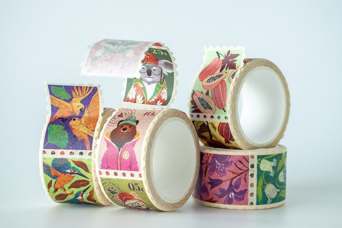Luiza’s distinctive style, blending warm textures with whimsical storytelling, turns ordinary stationery into a collector’s dream. Perfect for journalling, packaging, or simply brightening up a desk, her washi tape series is a playful testament to the joy of illustrated detail in everyday design.