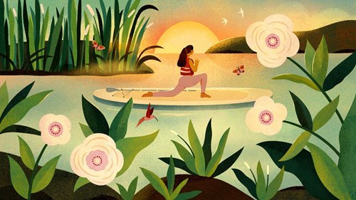 In some cases, gentle, organic lines are a feature of the artwork, but not to the exclusion of geometric forms. However, harder edges and corners tend to be softened by blending the colours to create an airbrush-style effect, hand-rendered shading or a touch of patterning. It’s a digital look, often driven by tools like Procreate, but it’s also very effective. This style combines impact with tactility. Sometimes it’s suggestive of Pop Art, while not quite forcing its way into that category.