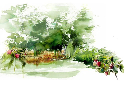 Yet watercolour can also be a very precise medium, full of detail. Some of our watercolour artists create incredibly intricate illustrations, deftly mixing their colours to achieve the tone they want to convey. It’s a different approach, with the atmosphere is carefully evoked through layer upon layer of color.