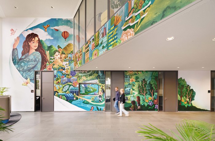 Philippines-based artist Alyssa brought a sense of warmth and imagination to ISTA’s main office in Essen, Germany, with a mural that literally peels back the wall to reveal a thriving European city.